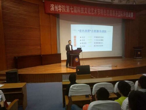 1324月24日,申慱sunbet娱乐在我们学苑会堂第二报告厅参加滨州学院第七届科技文化艺术节特色志愿服务团队评选决赛。2015级交通运输专业的王波同学参加本次比赛,并有20名同学观看了本次比赛。