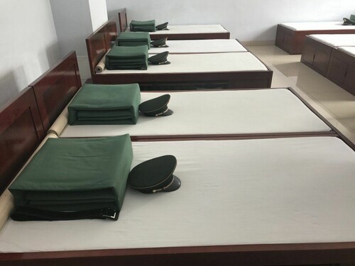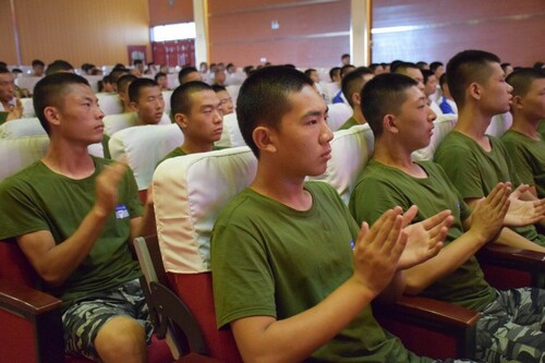 首先,新生们井然有序的排队参观了驻地军营设施和宿舍内务,他们无不对那清洁整齐的床铺和洗刷用品表示钦佩,特别是那些“豆腐块”更令新生们印象深刻。接着,武警官兵们表演了军体拳,那虎虎生风的动作引得新生们连连叫好,现场气氛热烈。最后支队队长为新生们做了动员讲话,诚挚的表达了对新生们刚升入大学的热烈祝贺,并表示希望他们在以后的学习过程中,不忘身体锻炼,提高个人身体素质,争取在学习和生活中做到更好。