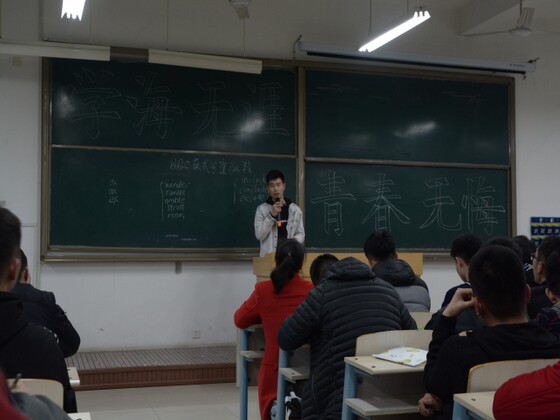 327为进一步巩固学风建设成果,营造良好的学习风气,助推人才培养质量和办学水平提升,提高学生学习氛围,增强英语综合应用能力、英语应试以及交流能力,申慱sunbet娱乐举办“学海无涯 青春无悔”主题班会。申慱sunbet娱乐辅导员李婷婷老师、2016级学生代表以及2017级全体学生参加。