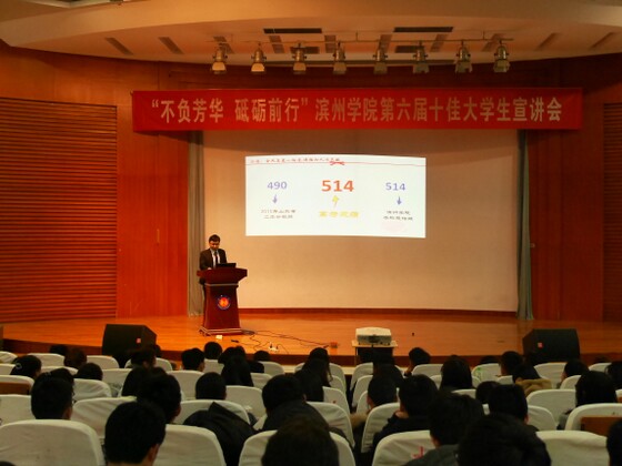 此次宣讲会展现了我校十佳大学生良好的精神面貌以及学校卓有成效的教学、管理成果,十佳大学生的优秀事迹和奋勇前行的精神激起了同学们的学习热忱, 弘扬了滨州学院自强不息的精神。