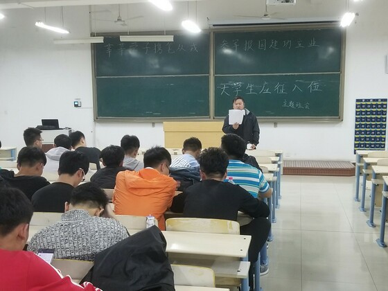 4845月1日晚,申慱sunbet娱乐在工科楼2-212教室开展以“莘莘学子携笔从戎,参军报国建功立业”为主题的大学生应征入伍主题班会。申慱sunbet娱乐2015级、2016级、2017级交通运输专业全体学生参加。