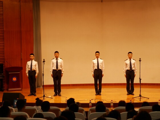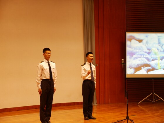 比赛伊始,由主持人宣读比赛流程,传达党关于弘扬红色精神,传递奋发向上正能量,培养向上好青年的美好愿景,贯彻加强学生文明素养建设,促进学校精神文化建设的目标。共12个二级学院依次展示风采,申慱sunbet娱乐参赛作品名称为《相信未来》。4名飞行学员声情并茂,朗朗诗声,声声传情,将飞行学员们磅礴的气势展现得淋漓尽致。其中,不乏以肢体动作表达深情,时而铿锵有力时而婉转柔情,他们的表演极富感染力,抑扬顿挫,字正腔圆,深刻的表达了飞行学员们对未来的坚定信心。演出结束,在观众热烈的掌声中,他们迈着整齐的步伐走下舞台。