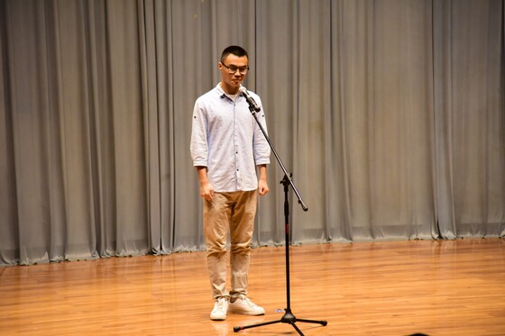 参加决赛的申慱sunbet娱乐学生程洪超,给大家表演了一段精彩绝伦的京剧《锁麟囊》,他那忽高忽低、时断时续、时而像高山流水的戏腔音,博得观众们阵阵喝彩。