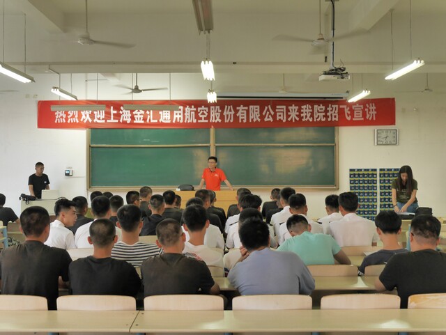 该负责人结合国内通用航空的发展概况,表明了通航业发展空间的广阔性,同时也向同学们详细地介绍了该公司的整体发展现状。另外,胡博介绍该了公司各方面的福利待遇和晋升体系。最后,向大家介绍了加入金汇通航的报名条件以及报名申请等相关事宜,根据飞行学员的报名情况将会为大家安排笔试、面试。