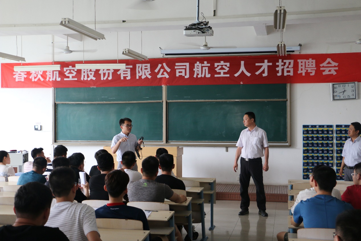 春秋航空股份有限公司是首个中国民营资本独资经营的低成本航空公司,已成为国内知名的航空品牌。获得“2017年度全球航空旅客大会年度最佳航司创新奖”、“2017年度航企‘最受大学生欢迎雇主'”等荣誉称号。此次招聘会共分四个环节:宣讲、笔试、面试、录用名单公示。