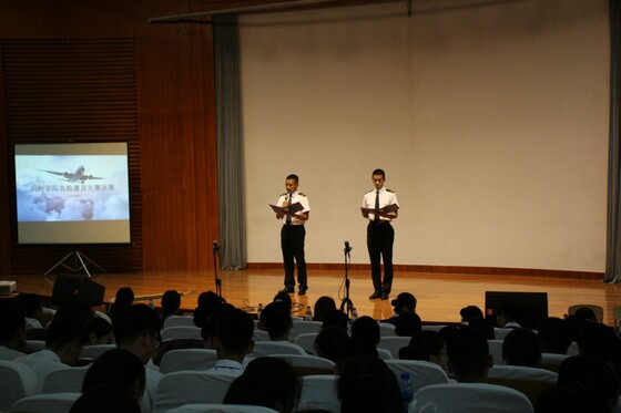 决赛分为两项,广播词播送和情景剧表演。选手们在赛前进行充分的准备,一遍又一遍的熟读广播词,比赛中选手们的表演让观众身临其境,闭上眼睛,仿佛自己身处飞机上。在情景剧表演中,有几个学院不约而同地选择了川航机长的故事,用自己的方式向英雄致敬。最终,申慱sunbet娱乐以优异的成绩获得大赛第二名。