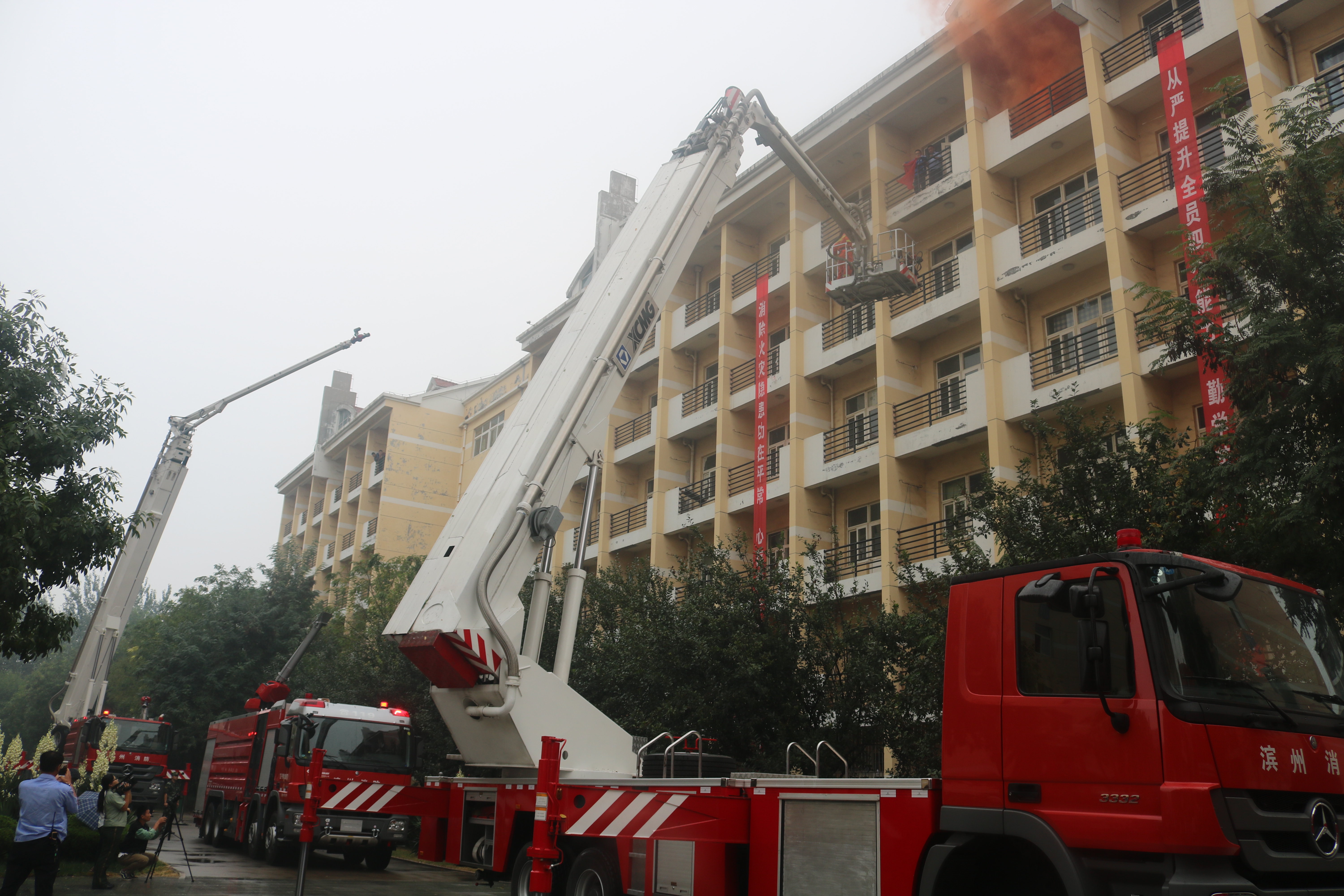 114按照《关于开展“法制安全教育月”活动的通知》的要求,2018年9月18日,在11号学生公寓楼前举行滨州学院2018年度消防实战演练,各二级学院新生代表到场观看。