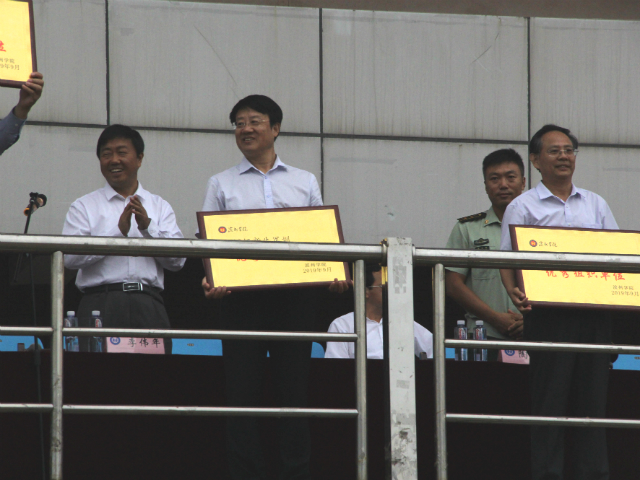 5859月12日,我们2019级新生军训汇报表演暨总结表彰大会在田径运动场隆重举行。党委副书记、校长李长海,党委副书记宋淑平,党委委员、副校长胡波、李伟年、杨玉森出席大会。各二级学院党总支书记、副书记,有关部门主要负责人,全体辅导员、2019级全体学生以及军训教官参加了大会。