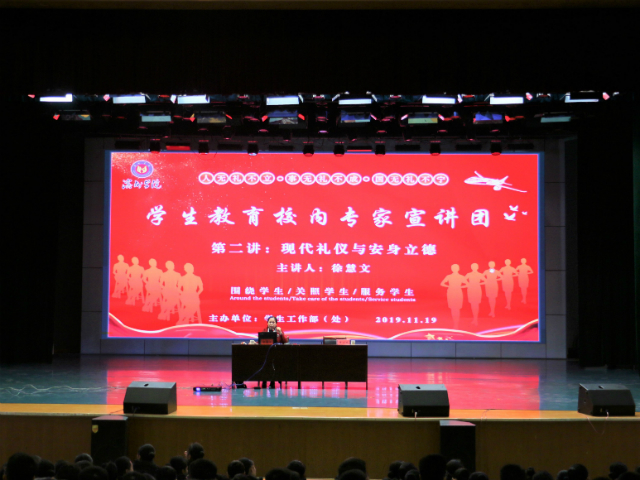39611月19日,学生工作处在学苑会堂第一报告厅组织了以“学生教育校内专家宣讲团第二讲:现代礼仪与安身立德”为主题的讲座。此次讲座由乘务学院徐慧文教授主讲,学生工作处主办。学生工作处处长贾卫东出席了本次讲座,申慱sunbet娱乐、乘务学院、机场学院的部分学生参加了本次讲座。