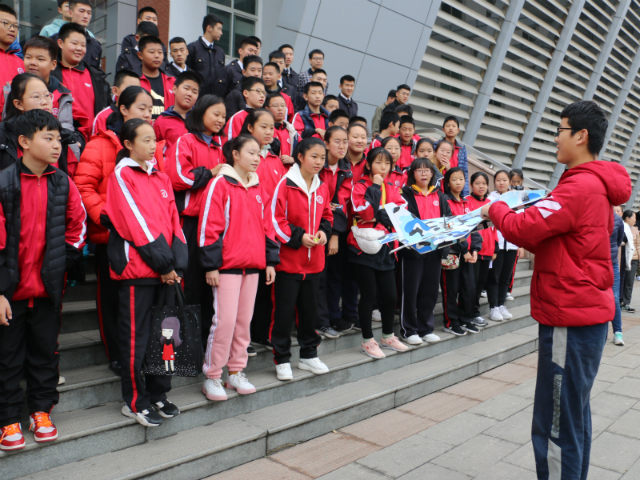 49611月23日上午,滨州实验学校组织2019级十班学生走进申慱sunbet娱乐参加“不忘初心、牢记使命”主题教育“双报到”活动。申慱sunbet娱乐党总支书记周鑫,党总支副书记王燕,副院长袁伟以及办公室主任王树斌,教师代表及全体师生党员热情招待了来访师生。
