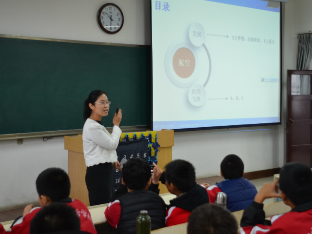 参观过程中,申慱sunbet娱乐师生向来访师生赠送了我们学生手工制作的航空器模型。最后,在工科楼1-403教室,周鑫和郭庆叶分别做了《怎么成为一名民航飞行员》和《航空科普知识》的报告,主题鲜明、立意深远、娓娓道来,赢得了参观师生的阵阵掌声。