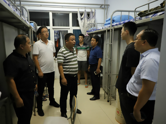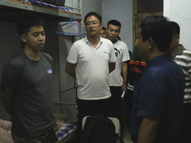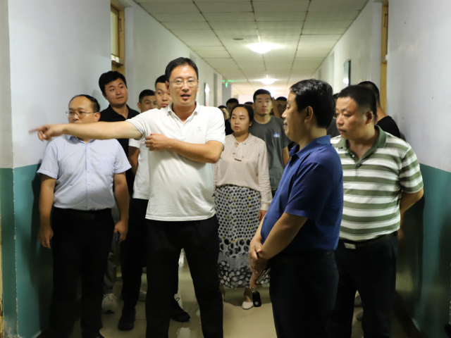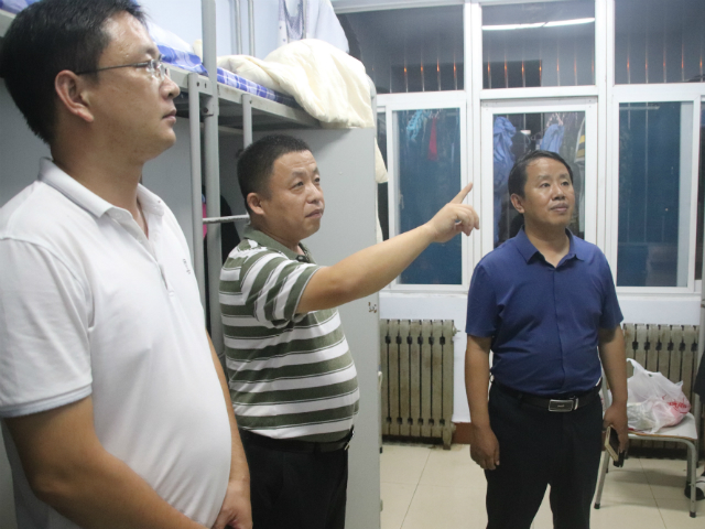 2078月24日晚20时,申慱sunbet娱乐院长杜玉杰,党总支书记王同印,党总支副书记李帅带领全体辅导员,走访学生宿舍,关切询问2019级及高年级同学新学期适应情况,细致查看学生宿舍设施情况。