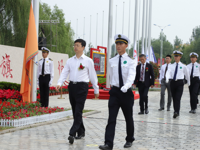 3559月25日上午,第二届滨州市企业家大会暨优秀企业旗帜广场升旗仪式在旗帜广场隆重举行,滨州市委书记、市人大常委会主任佘春明出席仪式,市委常委、秘书长张延廷主持仪式,市委常委、常务副市长张宝亮出席仪式并讲话,市优秀企业家参加。申慱sunbet娱乐237名学生作为志愿者参加了本次仪式。