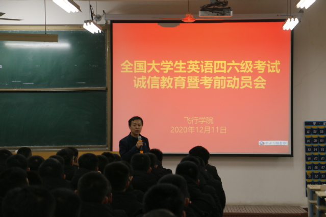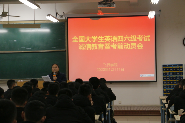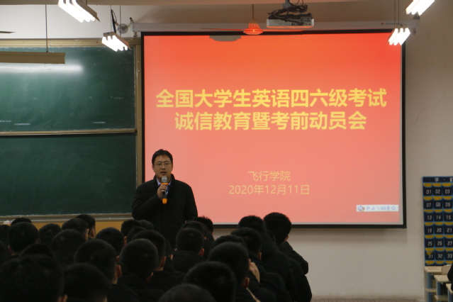 43912月11日晚,申慱sunbet娱乐在工科楼2-212教室举行全国大学生英语四六级考试诚信教育暨考前动员会。申慱sunbet娱乐党总支副书记李帅、副院长马文来、学生科科长桂晓亮、辅导员庞朝阳参加会议,申慱sunbet娱乐19级参加此次英语四六级考试的全体同学参加会议。