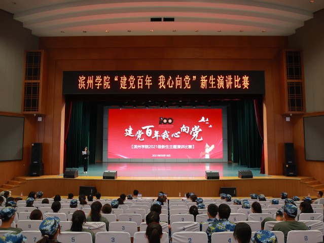 2759月18日下午,申慱sunbet娱乐在学苑会堂第一报告厅参加滨州学院“建党百年 我心向党”2021级新生主题演讲比赛。2021级六名学生代表参加比赛。